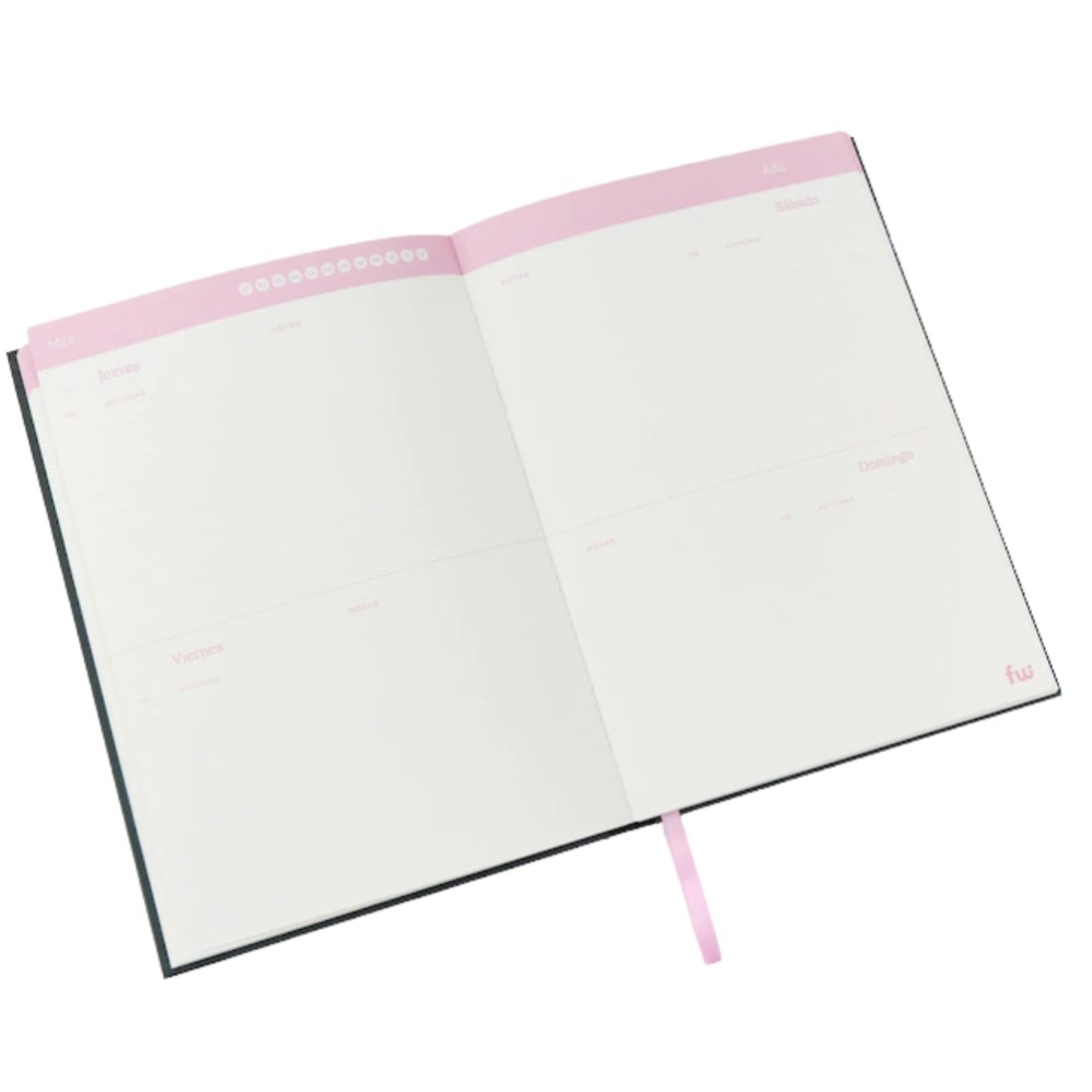 Bullet journal: hojas punteadas y logo exclusivo.